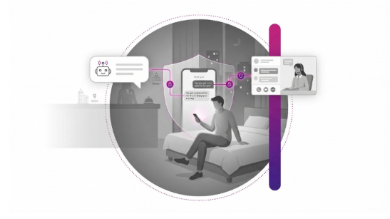 Voice bots answer in a natural cadence, chat platforms translate 100 languages instantly, and mobile apps let guests order room service without dialing “0.”