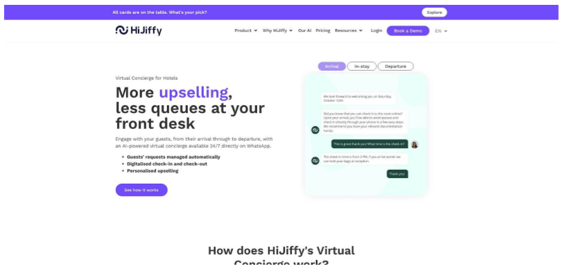 HiJiffy AI virtual concierge multi language chat interface screenshot
